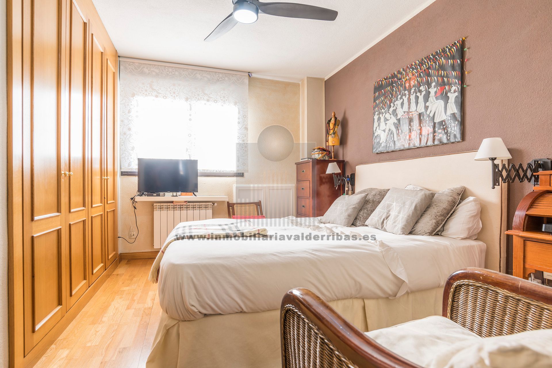 DESCRIPCION Inmobiliaria Valderribas vende en exclusiva, piso de 4 dormitorios con armarios empotrados, 2 baños completos (uno con plato de ducha, el otro con bañera), salon independiente con salida a terraza abierta, dormitorio principal con vestidor, cocina amplia con tendedero cubierto, suelos de parquet, aire acondicionado, calefaccion de gas natural individual, doble ventanas en los dormitorios, paredes lisas, plaza de garaje y trastero. Urbanizacion cerrada con piscinas (adultos y niños), zonas verde y conserje. Bien comunicado, autobus en la puerta (4, 71, 100, 106, E3 y E5), a 150 metros de Renfe y Metro (linea 9 de metro y C-y C7 de Cercanias), a 2 minutos en coche de A-3, R-3, M-40, M-45 y O^Donnell. Colegios, institutos, guarderias, supermercados, centro de salud, parques, todo muy cerca. PRECIO 565.000 €