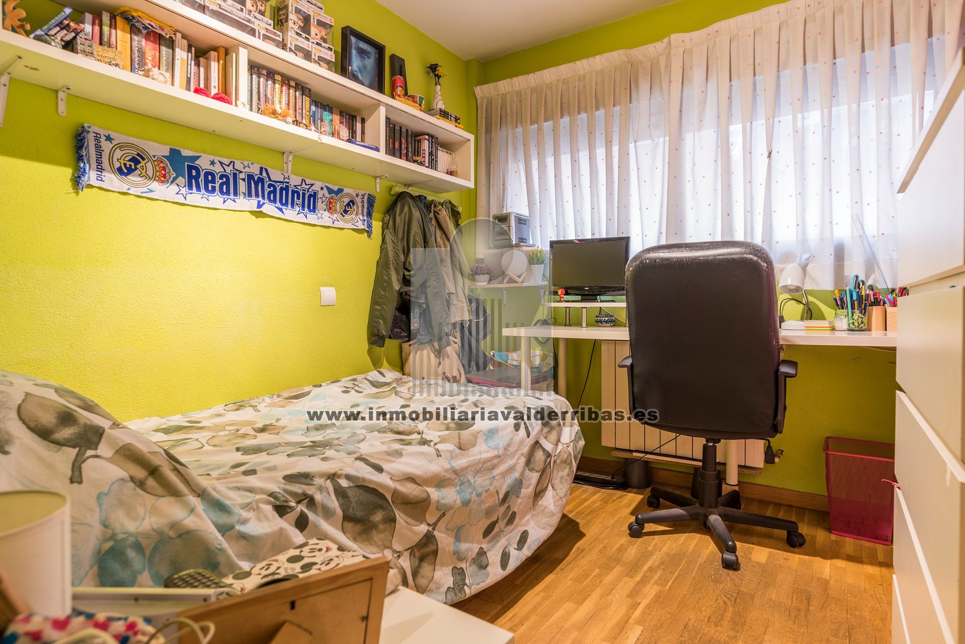 DESCRIPCION Inmobiliaria Valderribas vende en exclusiva piso de 3 dormitorios, 2 baños completos con plato de ducha, muy luminoso, cocina amplia con tendedero cubierto, salón independiente, armarios empotrados, suelos de parquet, ventanas de climalit, plaza de garaje y trastero. Urbanización cerrada, vigilancia 24 hs, piscina, pista de paddel, zona infantil, zonas verdes. Bien comunicado, autobus en la puerta (4, 71, 100, 106, E3 y E5), a 50 metros de Renfe y Metro (linea 9 de metro y C-y C7 de Cercanias), a 2 minutos en coche de A-3, R-3, M-40, M-45 y O^Donnell. Colegios, institutos, guarderias, supermercados, centro de salud, parques, todo muy cerca. PRECIO 480.000 €