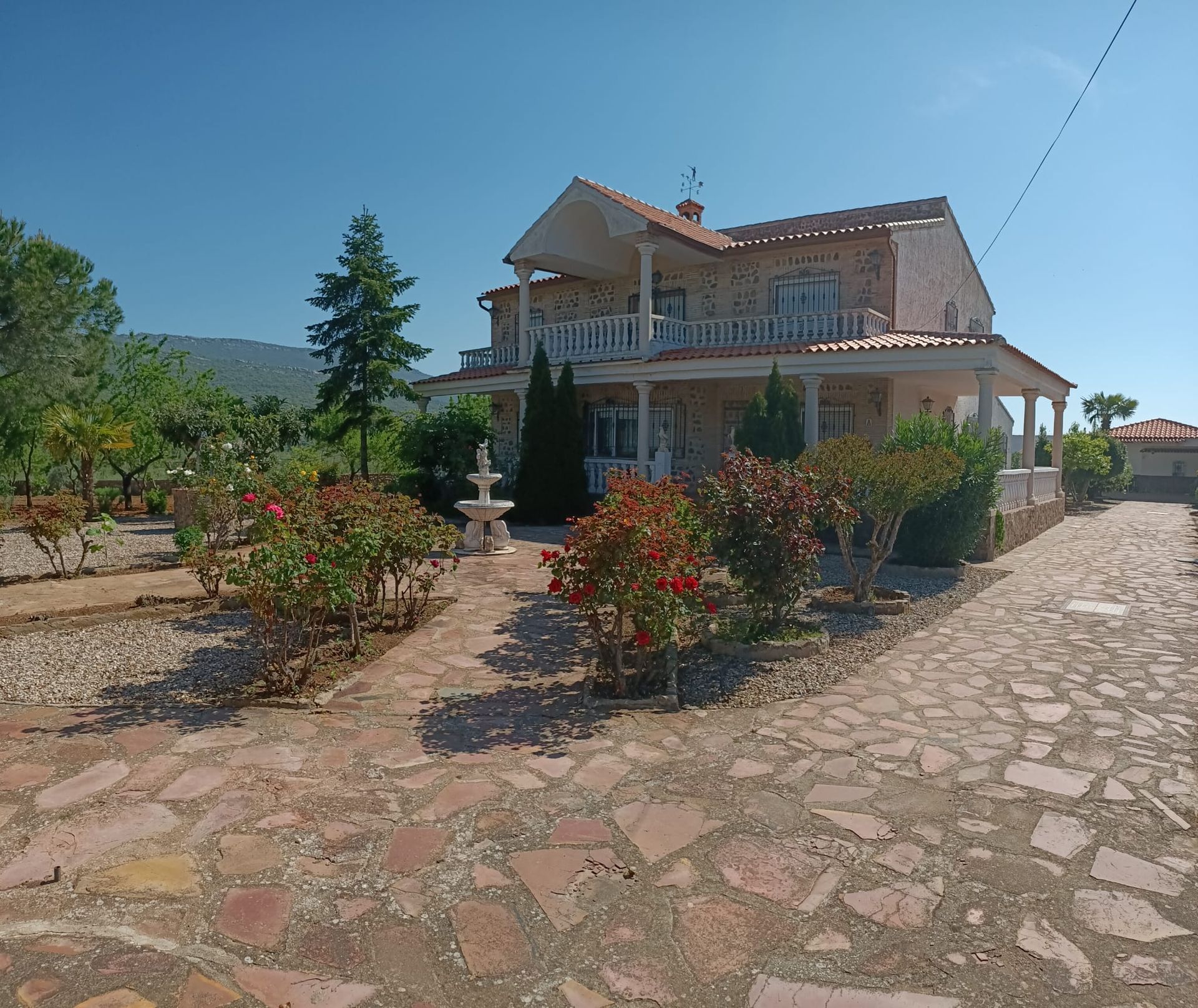 DESCRIPCION Inmobiliaria Valderribas vende, CASA - CHALET de 404 m2 EN PARCELA INDEPENDIENTE DE 2274m2. Montes de toledo " zona los yebenes" un pequeño oasis en plena naturaleza. GRAN OCASIÓN! para inversores/Agencias de viajes, alojamiento turístico, visitas guiadas relacionadas con parque temático. A 30 minutos de Toledo, ciudad histórica y cultural. Muro de piedra vallado y berjas de hierro macizo, 2 acometidas de aguas y 3 puertas de acceso. Chalet de 2 plantas con 7 habitaciones, 3 baños, zona de huerto y arboles frutales. Planta baja 2 porches cocina de 33mts con chimenea y despensa doble salón con chimenea de obra hall de entrada 2 habitaciones baño completo con bañera y ventana planta primera 5 habitaciones ( habitación de matrimonio con terraza de 25mts) 2 baños completos con ventanas revestimiento de ladrillo de era, paredes con aislamiento, ventanas de madera y aluminio, calefacción gasoil con radiadores de hierro fundido, alcantarillado. parcela garaje techado para 2 coches aseo leñera barbacoa cuarto de herramientas cuarto de calderas zona de ocio con cocina de campo de 44 mts con chimenea de obra y ladrillo de era. Se queda prácticamente amueblado, incluida cocina y utensilios". PRECIO 360.000 €
